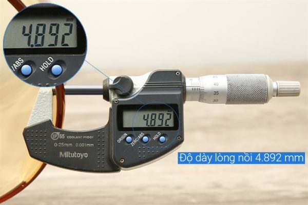 - Thành nồi dày 4.892 mm, giữ nhiệt tốt, tỏa nhiệt đều giúp nấu thực phẩm chín nhanh.
